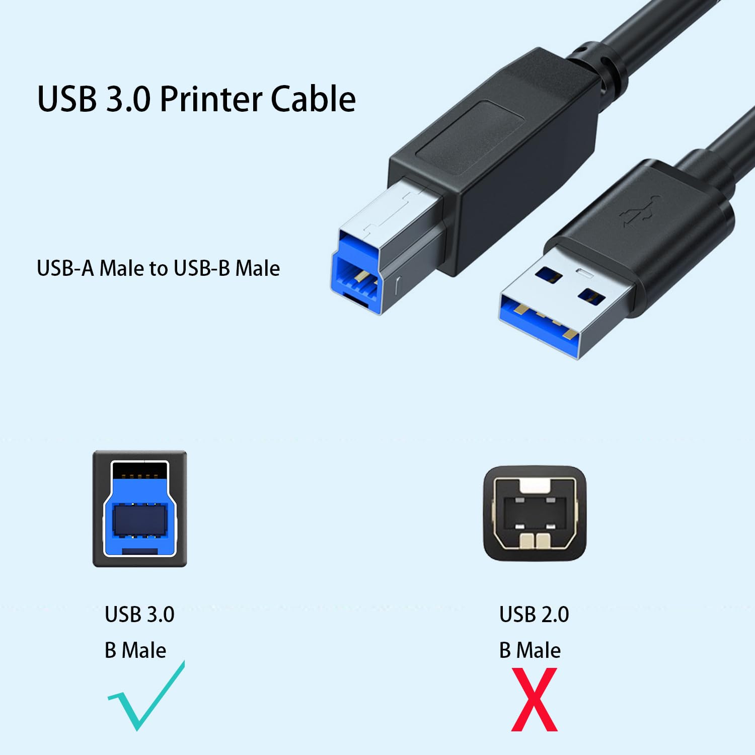 Cable USB 3.0 de alta velocidad, conector Tipo A a Tipo B, ideal para impresoras y dispositivos de escritorio. Su longitud compacta de 18 cm lo hace perfecto para conexiones ordenadas y sin exceso de cableado.
