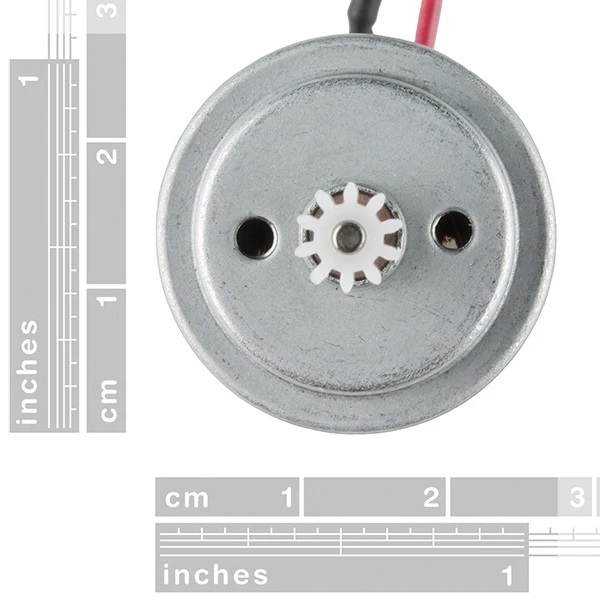 Nota: Aunque la hoja de datos de este motor de pasatiempos indica un rango de voltaje máximo de 3.0 VCC, nuestro proveedor nos ha asegurado que admite una carga máxima de 12 VCC.